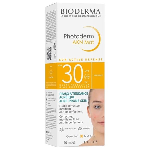 Bioderma Photoderm AKN Mat SPF 30 Mattifying Fluid 40ml هو واقي شمس مصمم خصيصًا للبشرة الدهنية والمعرضة لحب الشباب، ويوفر حماية عالية من أشعة الشمس مع تأثير مطفأ للمعة.