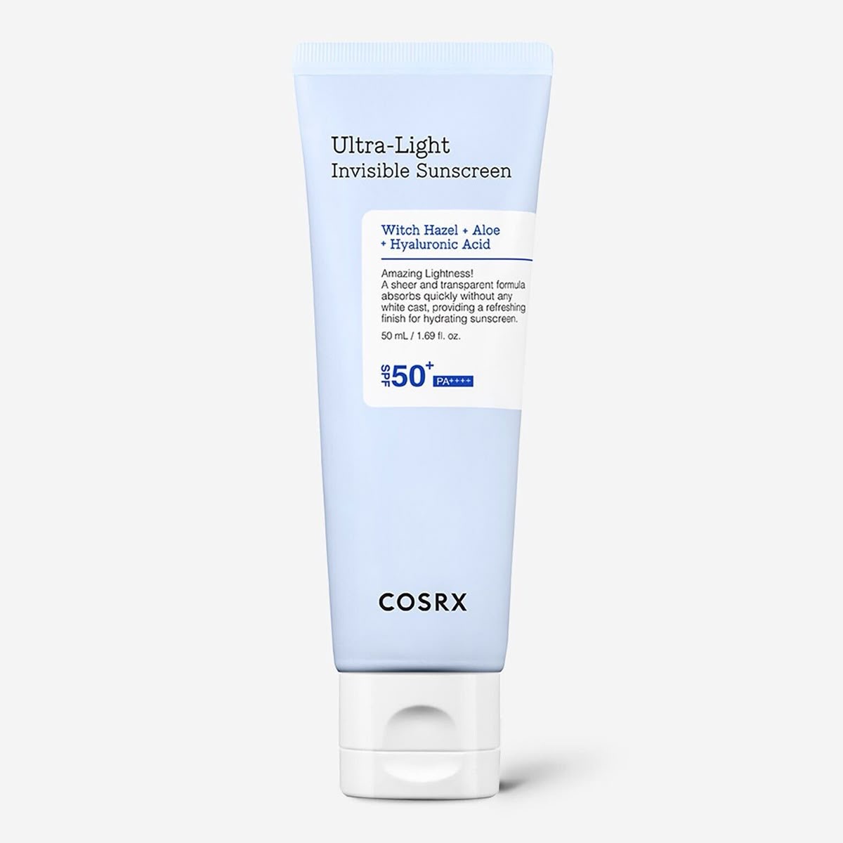COSRX Ultra-Light Invisible Sunscreen SPF50+ PA++++ هو واقي شمسي كيميائي مرطب وذو ملمس خفيف للغاية يمتص بسرعة دون ترك أي طبقة بيضاء، مما يجعله مناسباً لجميع ألوان وأنواع البشرة.