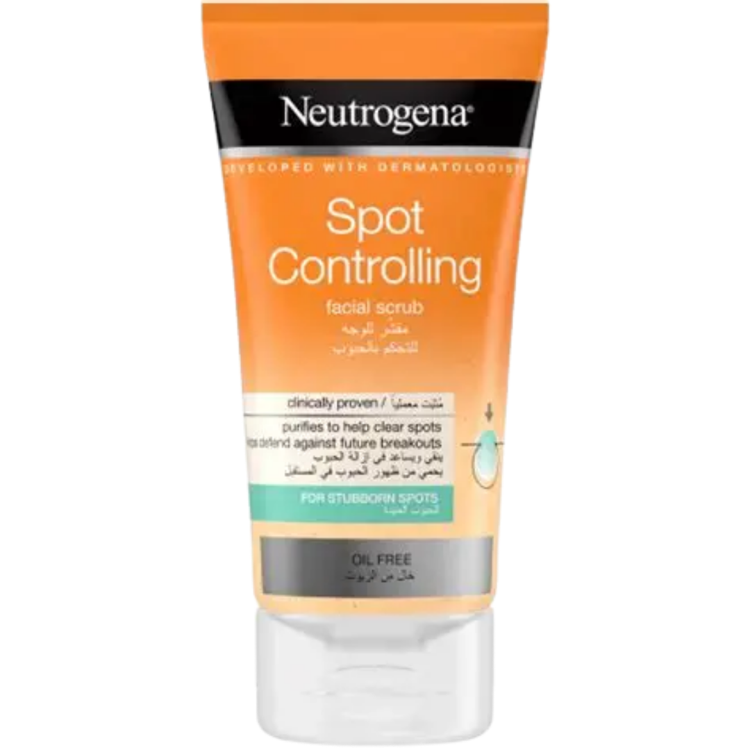Neutrogena Spot Controlling Facial Scrubهو مقشر يومي خالٍ من الزيوت مصمم خصيصاً للبشرة المعرضة للشوائب، حيث يعمل على تنظيف المسام بعمق والمساعدة في إزالة الحبوب العنيدة مع الحفاظ على حاجز الحماية الطبيعي للبشرة