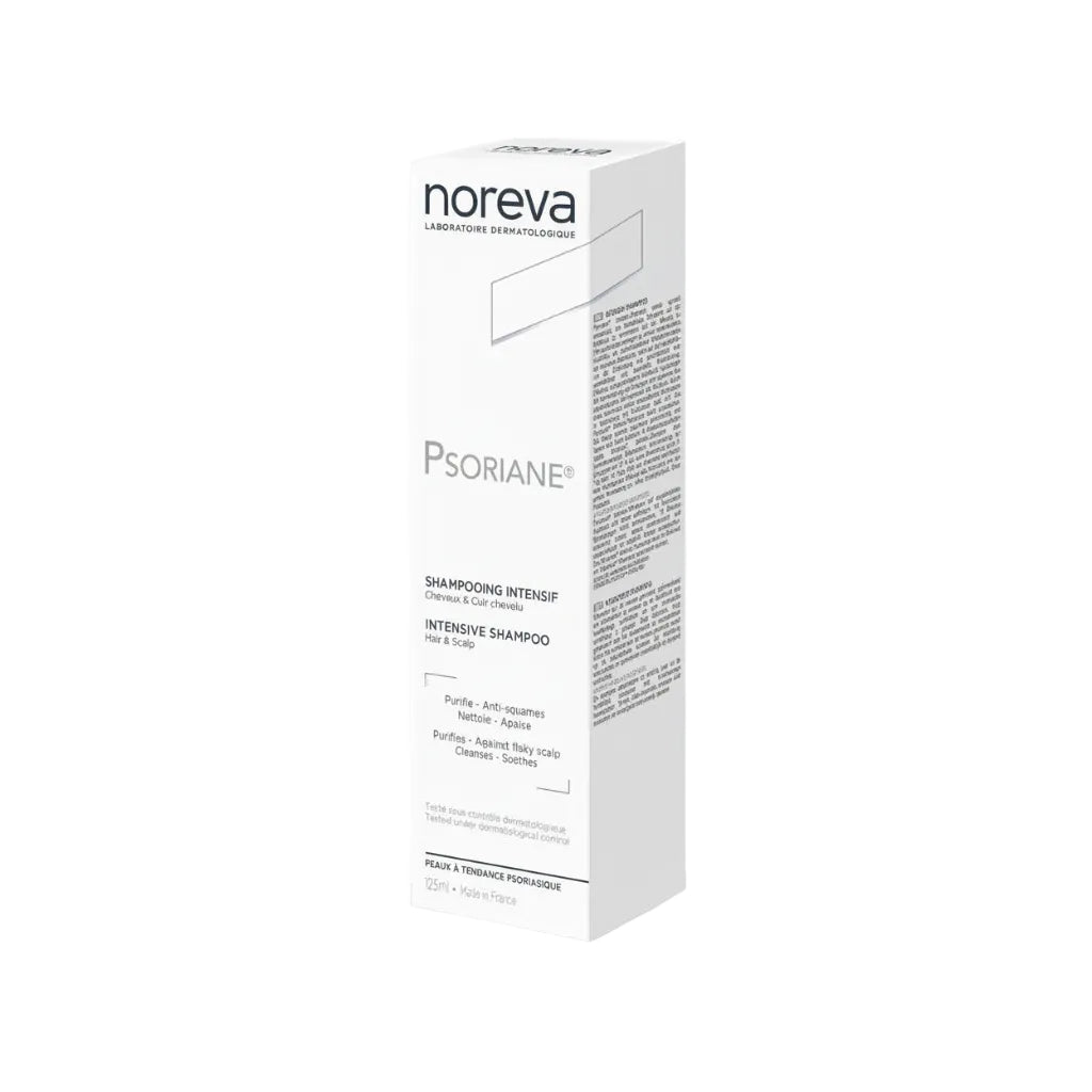 Noreva Psoriane Intensive Shampoo هو شامبو علاجي مصمم خصيصًا لفروة الرأس التي تعاني من القشرة المزمنة السميكة والصدفية، حيث يساعد على تنقية وتهدئة فروة الرأس بشكل فوري ودائم