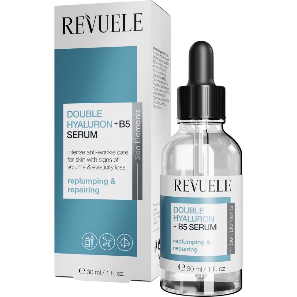 Revuele Double Hyaluron + B5 Serum – 30ml هو مُركّز ترطيب مكثف مصمم لاستعادة نضارة البشرة ومرونتها بفضل تركيبته التي تجمع بين نوعين من حمض الهيالورونيك وفيتامين B5.