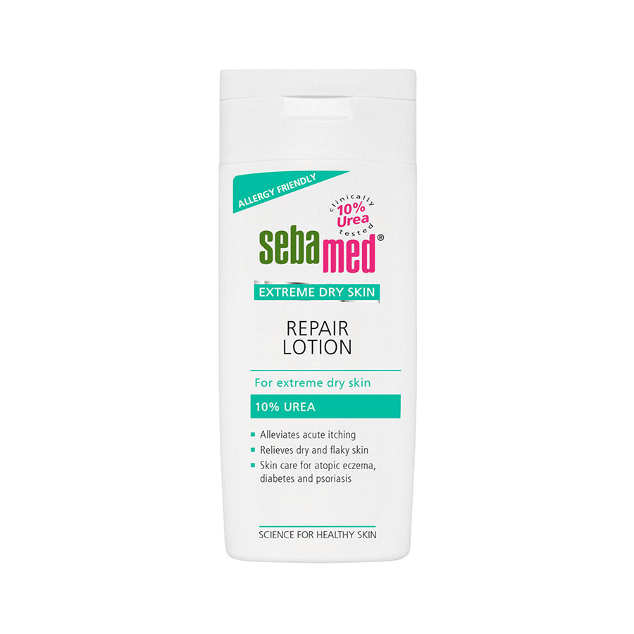 Sebamed Extreme Dry Skin Repair Lotion هو مستحضر طبي ألماني مصمم خصيصاً لعلاج حالات الجفاف الشديد والتقشر والحكة. يتميز بتركيز عالٍ من اليوريا بنسبة 10%، وهي مادة طبيعية في الجلد تعمل على حبس الرطوبة وتقشير الخلايا الميتة بلطف.