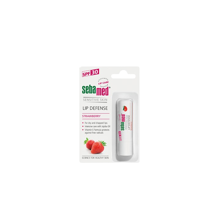 Sebamed Lip Defense Strawberry SPF 30 مرطباً طبياً متكاملاً للشفاه، مصمماً لعلاج الجفاف والتشقق مع توفير حماية فعالة من أشعة الشمس وعوامل البيئة. يتميز بتركيبته الغنية بالزيوت النباتية والفيتامينات، ويمنح الشفاه لوناً وردياً خفيفاً ولمعاناً طبيعياً بنكهة الفراولة المنعشة.