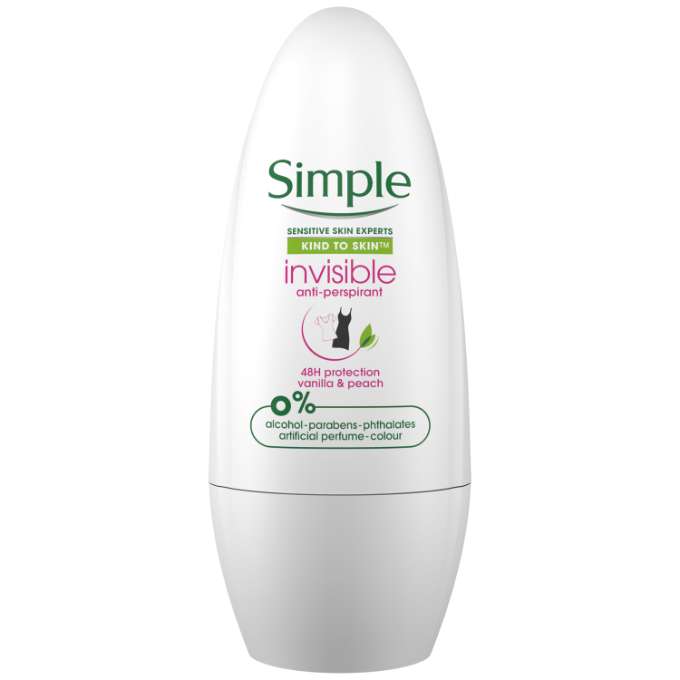 Simple Invisible Anti-Perspirant Deodorantهو منتج مصمم لتوفير حماية فعالة من العرق والرائحة لمدة تصل إلى 48 ساعة مع كونه لطيفاً للغاية على البشرة الحساسة ولا يترك علامات بيضاء على الملابس.